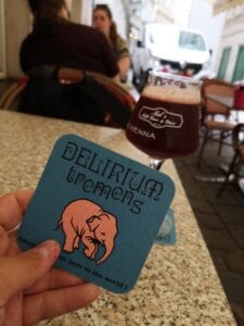 On a side street, just off of one of the small squares in Vienna, I saw a sign saying Delerium on draft. Knowing that it is one of my favourite Belgian beers I had to go and investigate. Outside the bar was a small seating area for drinks and lunch and, inside, was a small bar with taps just for Delirium. In addition, they had a cooler full of craft beer – around 80 different ones. But I came for the Delirium.